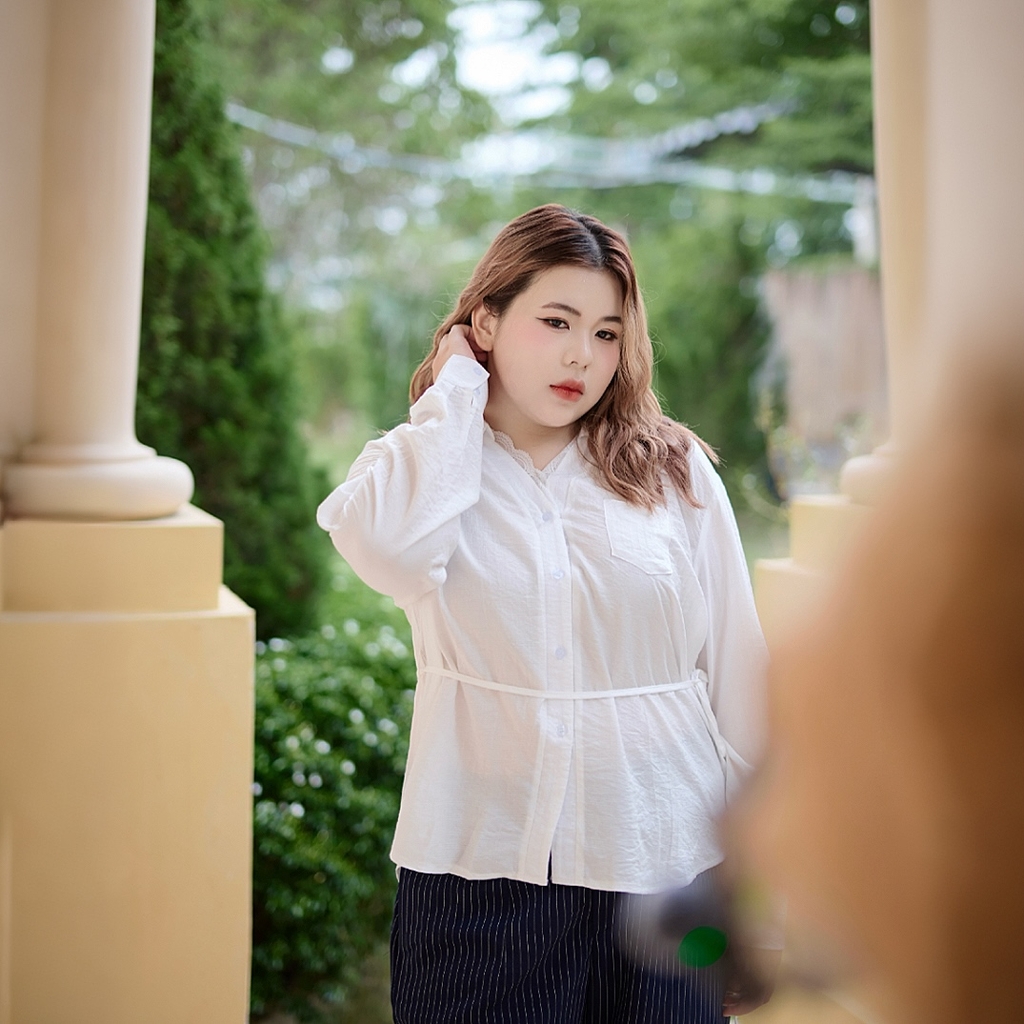 - Thiết kế: cổ phối ren tinh tế tạo điểm nhấn nổi bật, tay lỡ dễ xắn, form rộng thoải mái. Dây buộc eo giúp “hack” dáng khéo léo, tôn lên vòng eo và tạo đường cong nhẹ nhàng.