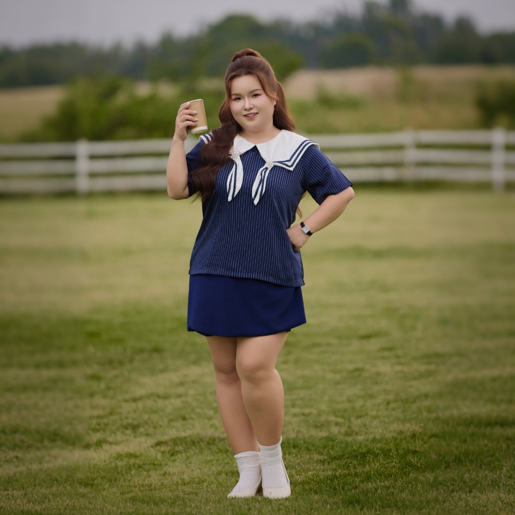Áo thủy thủ bigsize dành cho nàng 60–110kg, thiết kế hiện đại – nữ tính – dễ mặc. Chất liệu cotton lụa mềm mát, nhẹ, hạn chế nhăn, tạo cảm giác thoải mái suốt ngày dài. Dáng áo rộng vừa, che khuyết điểm tốt và dễ phối đồ.