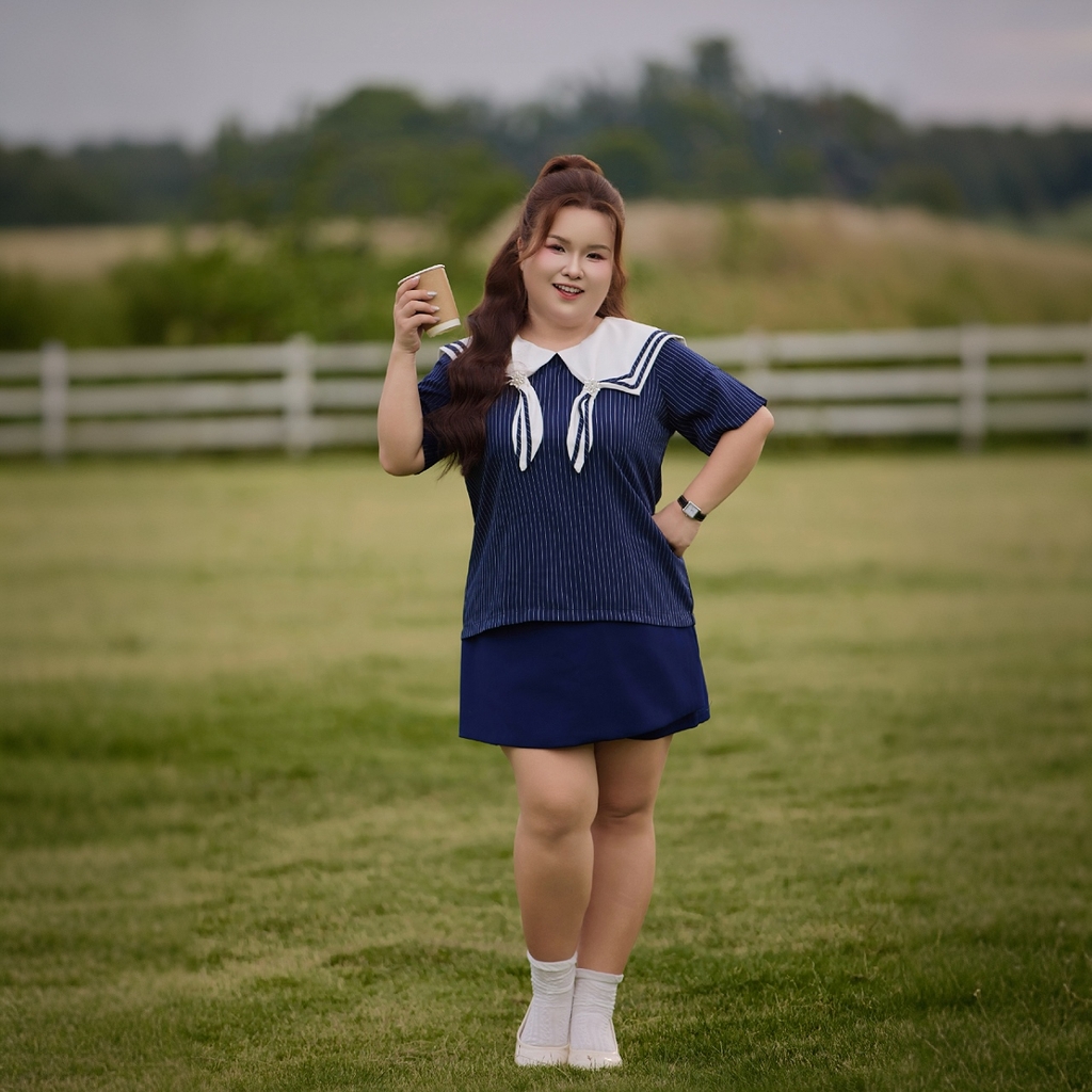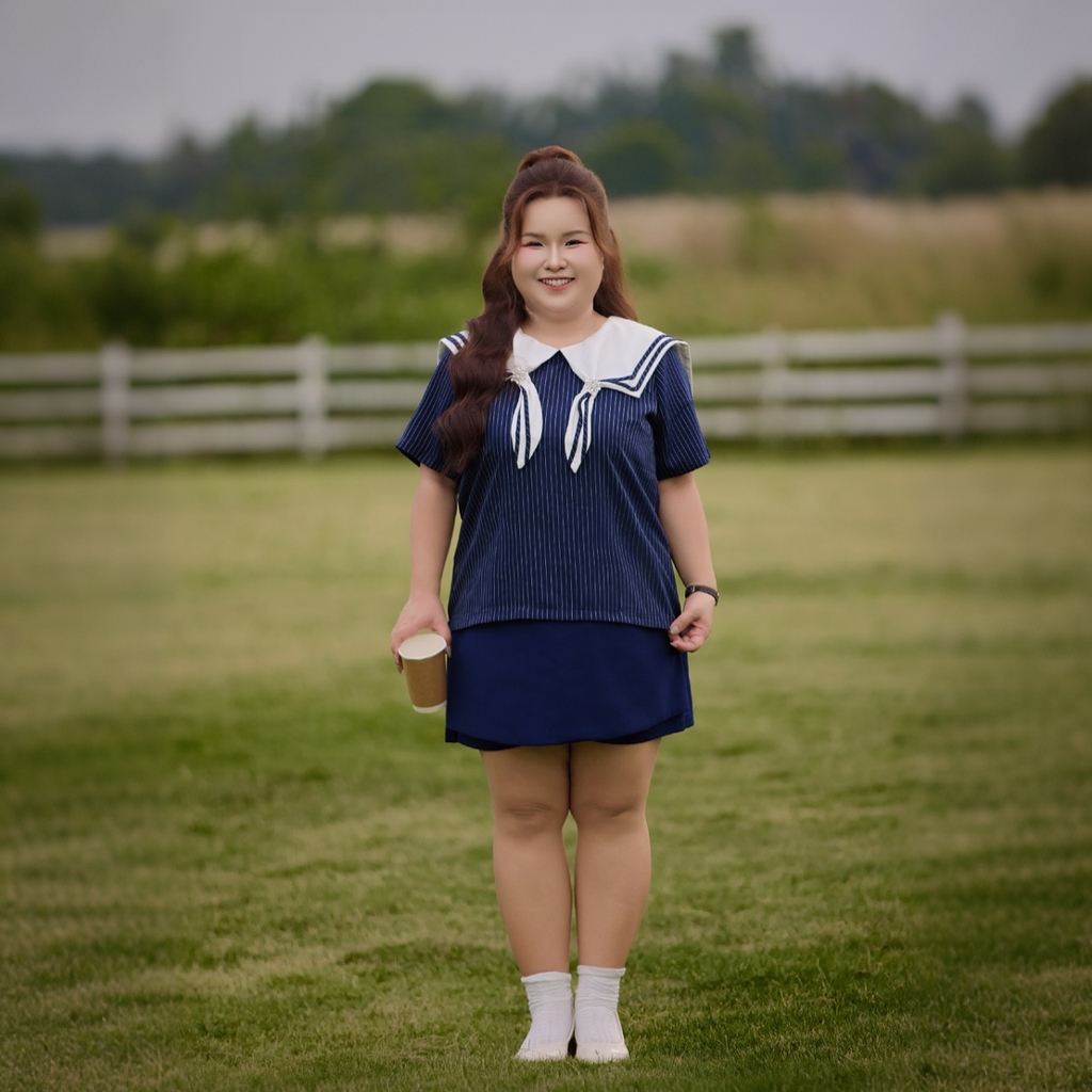 – Cổ thủy thủ phối sọc ngang tạo điểm nhấn thanh lịch và trẻ trung.