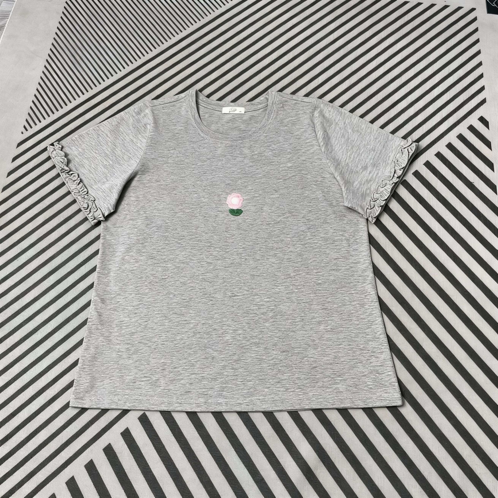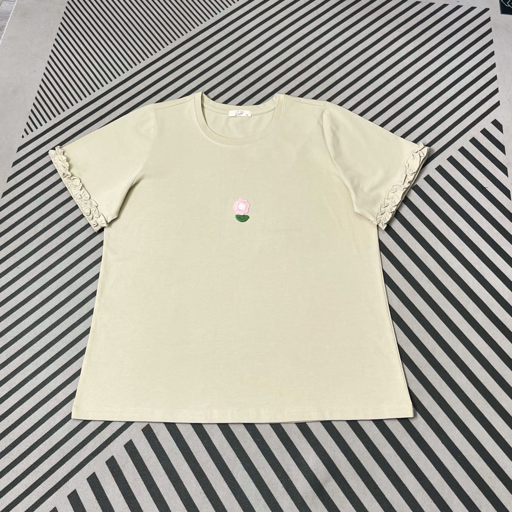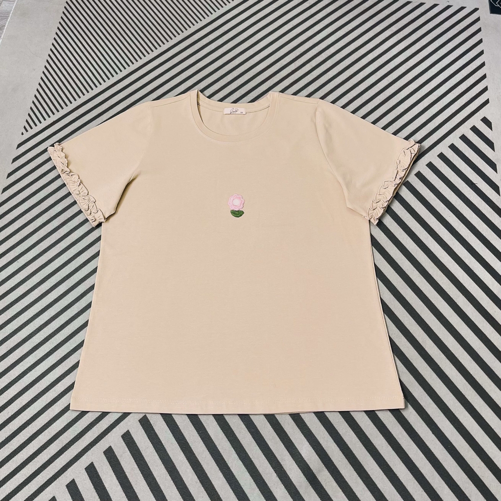 Áo thun hoa nổi thiết kế tay bèo nhẹ nữ tính, phù hợp nàng yêu phong cách trẻ trung, dễ thương nhưng vẫn giữ sự thanh lịch. Chất liệu cotton lụa mềm mát, thấm hút tốt, hạn chế nhăn, thoải mái mặc cả ngày. Form rộng bigsize che khuyết điểm tốt, mặc đẹp cho các nàng từ 60–110kg.