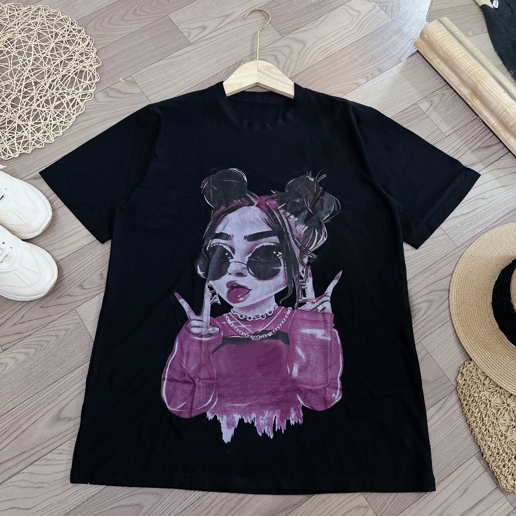 Áo thun phom rộng in hình cô gái bigsize 55kg - 95kg
