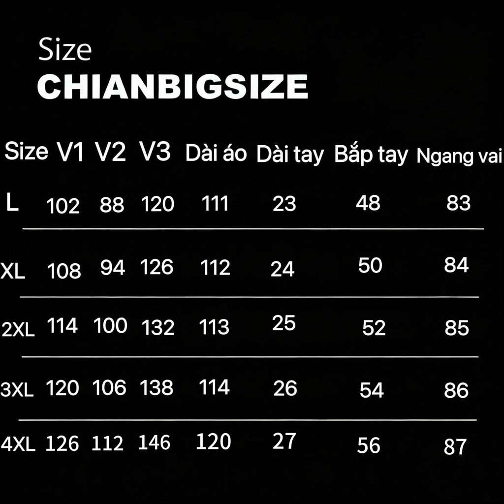 : L – XL – XXL – 3XL (từ 60kg đến 100kg mặc đẹp)