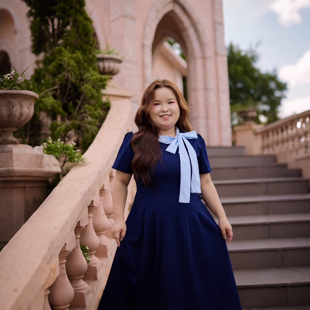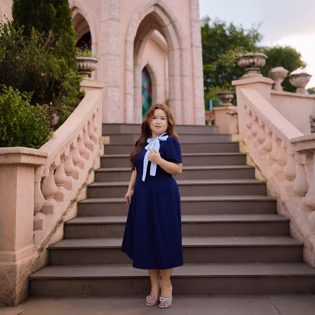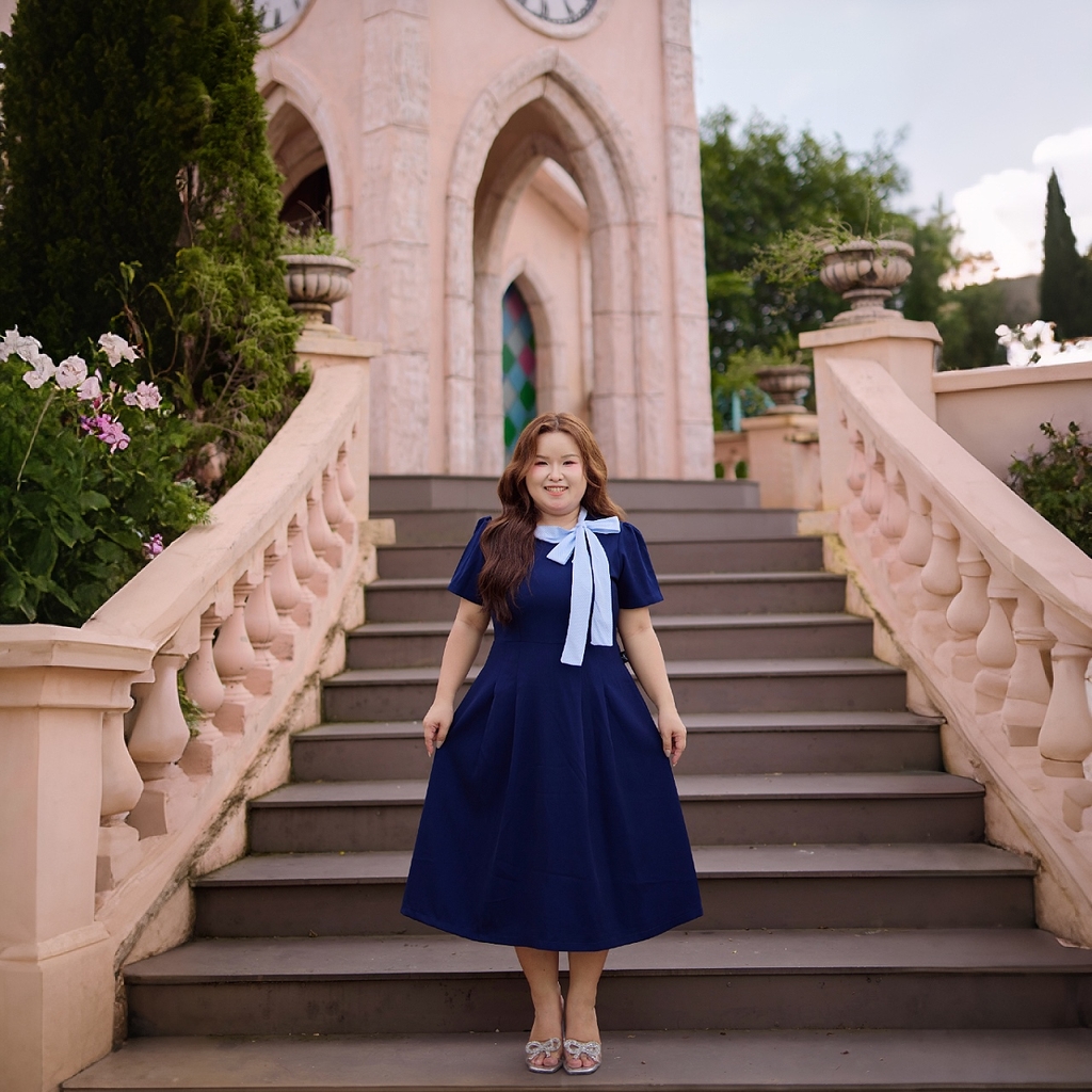 Đầm bigsize dáng xòe thiết kế cổ cột nơ sọc xanh nổi bật, mang phong cách thanh lịch, nữ tính nhưng vẫn trẻ trung và năng động. Chất liệu tuyết mưa 2 lớp dày dặn, co giãn tốt, bề mặt mát mịn, nhẹ và hạn chế nhăn, giúp mặc thoải mái cả ngày và lên form đẹp.