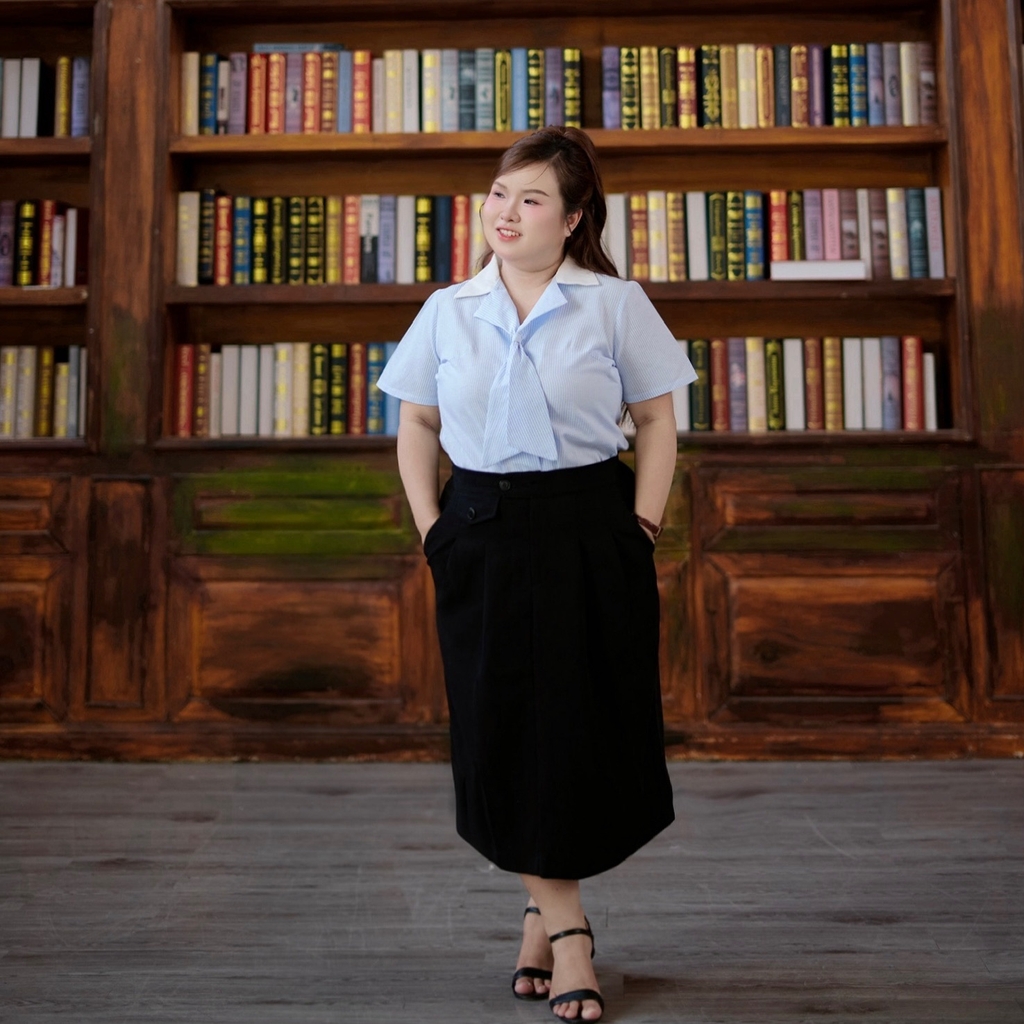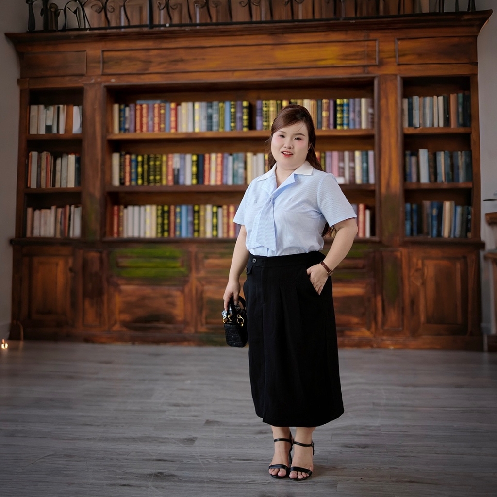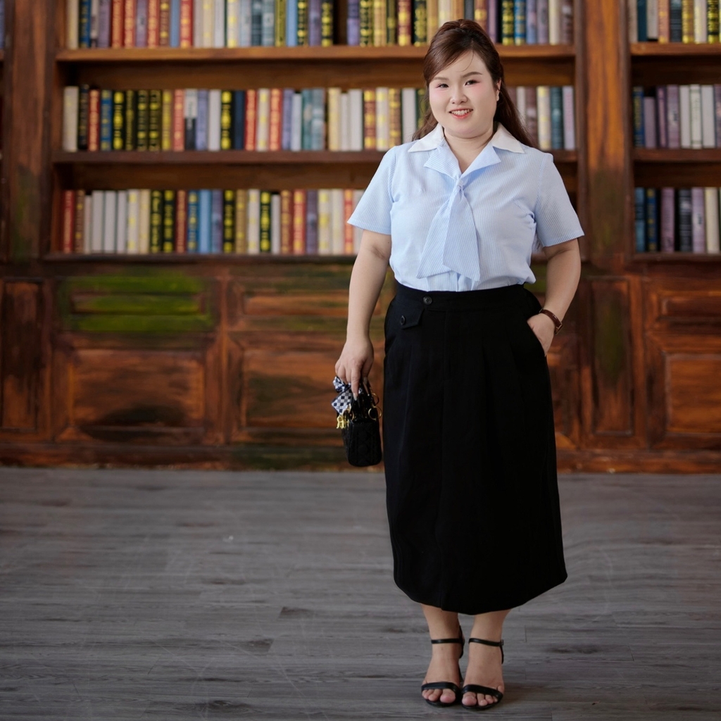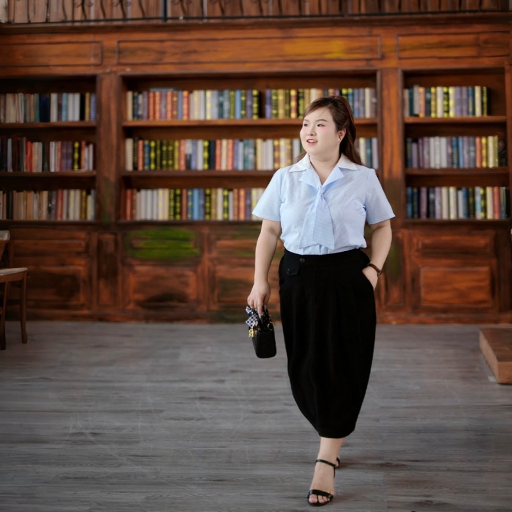 Form dáng kín đáo, thanh lịch nhưng vẫn năng động, trẻ trung, dễ dàng phối cùng áo kiểu, sơ mi hay áo thun. Thích hợp mặc đi làm, đi học, đi chơi, sự kiện nhẹ nhàng.