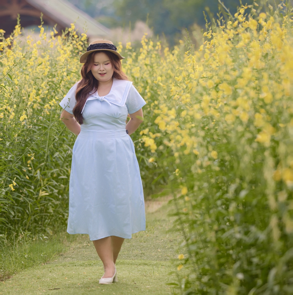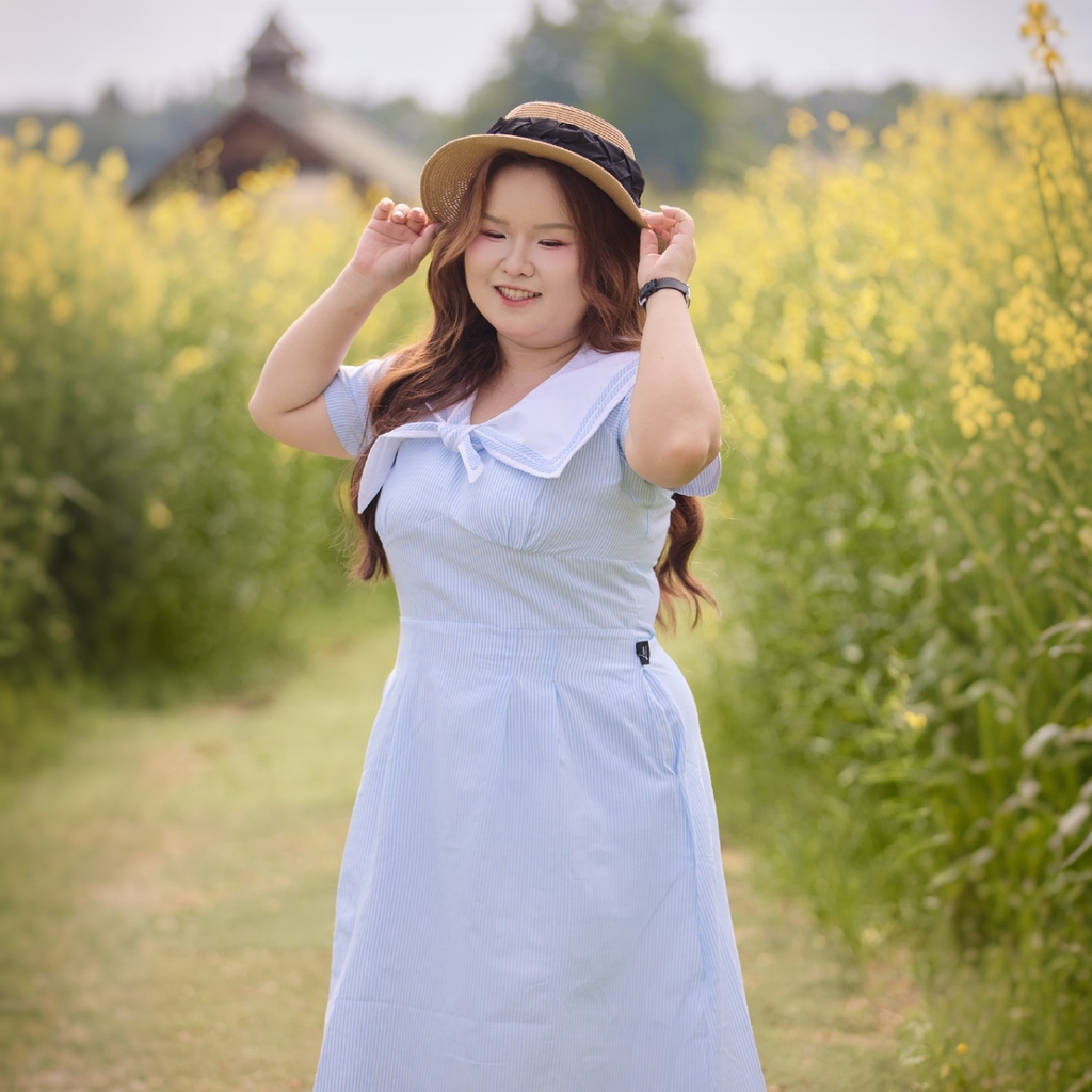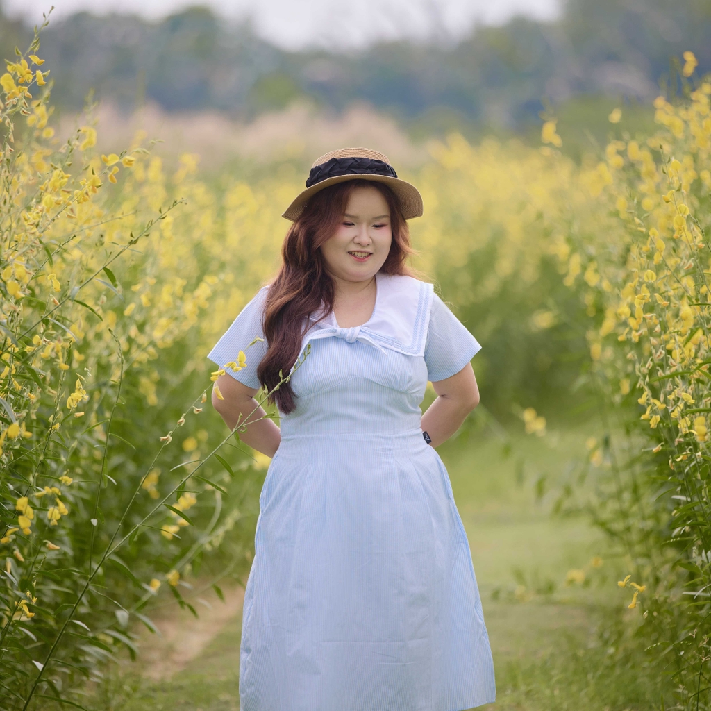 Đầm bigsize nữ thiết kế cổ thủy thủ phối nơ sọc xanh nổi bật, mang phong cách thanh lịch, nữ tính nhưng vẫn trẻ trung, năng động. Chất liệu kate sọc mềm 2 lớp dày dặn, co giãn nhẹ, mát mịn, hạn chế nhăn, mặc thoải mái và giữ form tốt. Form đầm dễ mặc, che khuyết điểm hiệu quả, phù hợp đi làm, đi tiệc hoặc đi chơi.