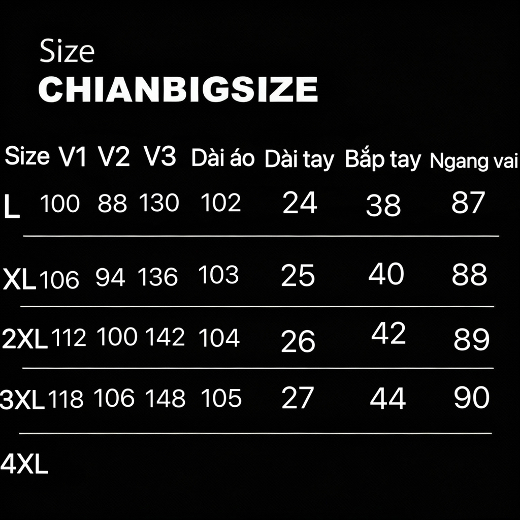 Size: L, XL, XXL, 3XL (phù hợp 60–100kg).
