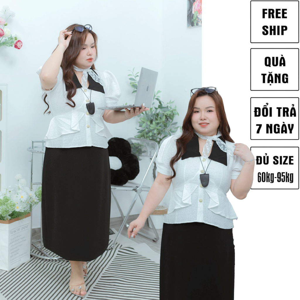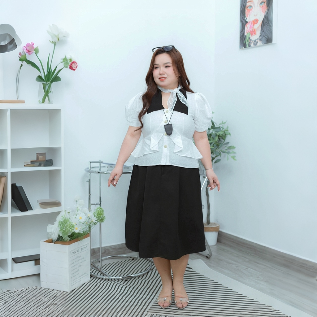 Tự tin tỏa sáng với mẫu áo peplum trắng tay phồng sang trọng – thiết kế dành riêng cho nàng từ 60–95kg.