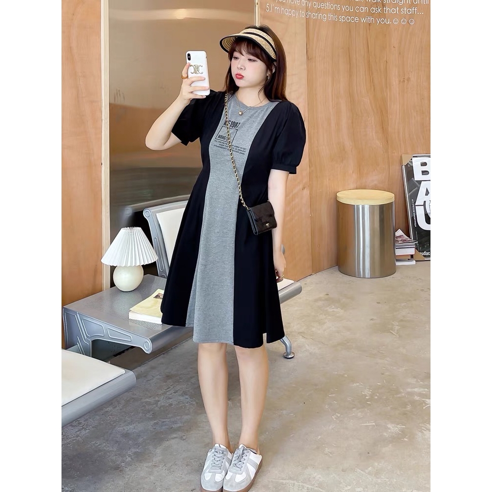 [MUA1TẶNG1] Đầm thun bigsize phối màu( hình video thật )