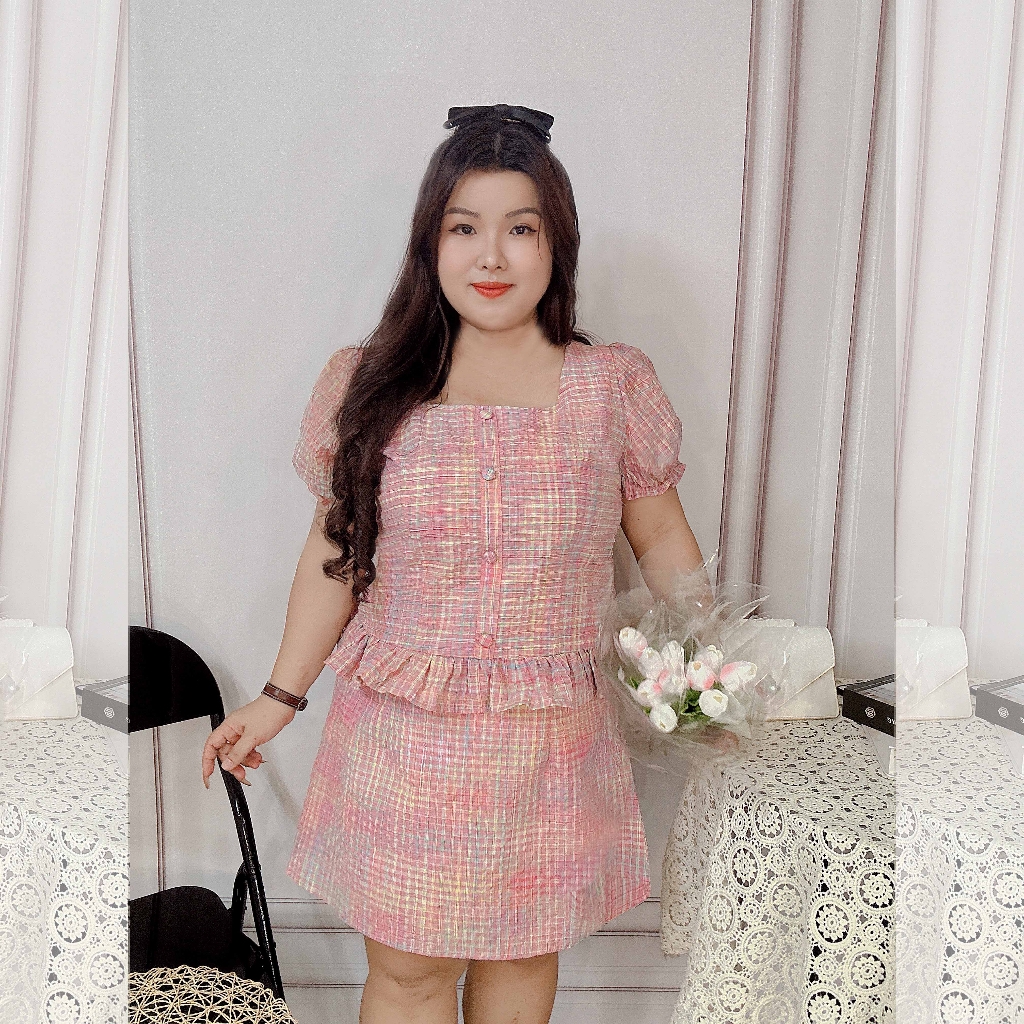 [MUA1TẶNG1] SÉT CARO HỒNG VÁY QUẦN BIGSIZE hình và video thật