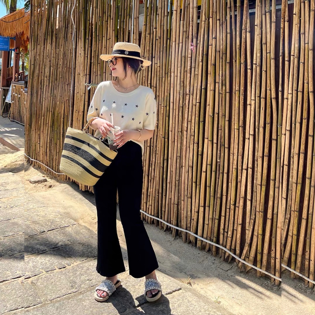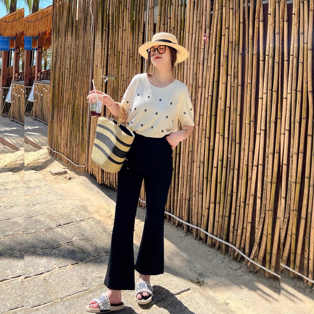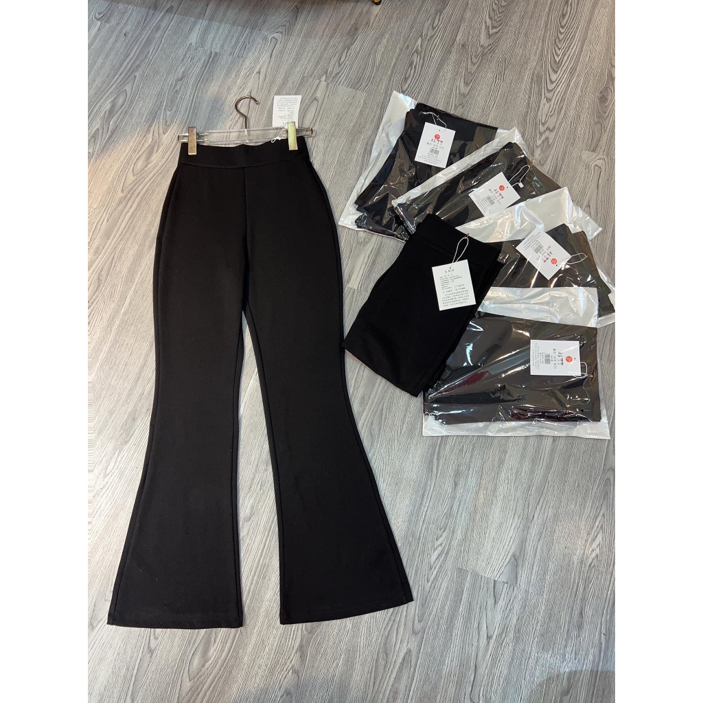 Quần ống loe chất umi dày dặn, co giãn thoải mái. Lưng cao tới rốn không lo lưng xệ khi ngồi. Thiết kế ống loe hack dáng đối với các nàng bigsize
